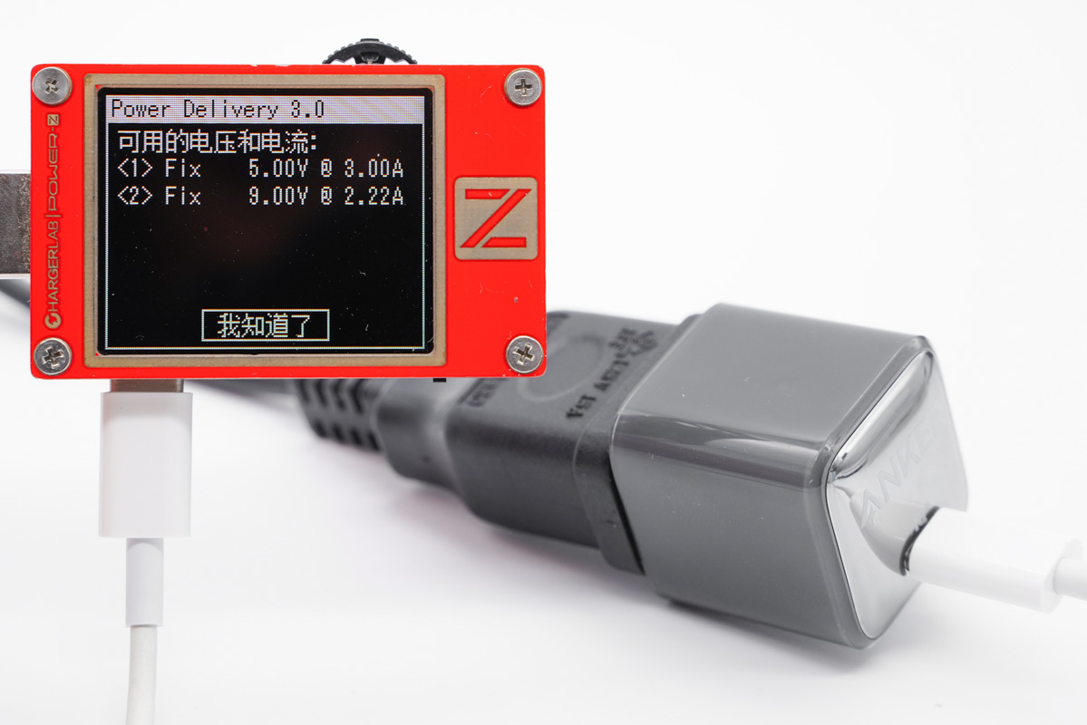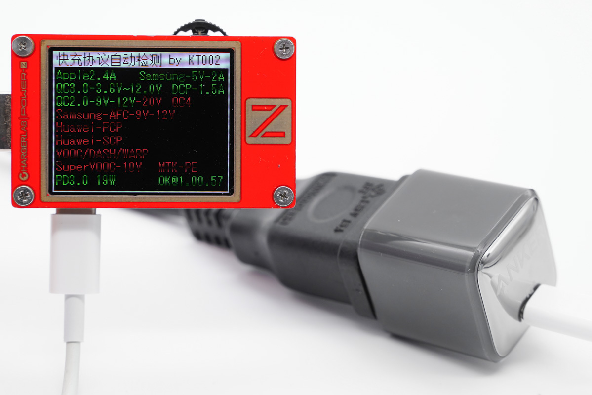 使用ChargerLAB的POWER-Z KT002读取充电器的快充协议,实测支持PD3.0、Apple2.4A、QC2.0、QC3.0快充协议。