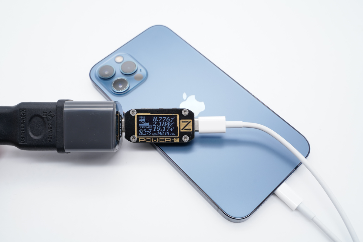 下面进入实测环节,为iPhone 12 Pro充电功率为8.77V 2.18A 19.17W。