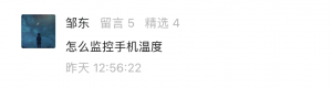 答:这里指的应该是充电器的温度,不是手机的温度。有些充电器内部的谋颗芯片可能会有温度检测功能,或者加入了温度控制元器件,可以检测到手机充电时充电器的温度。