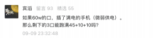 2、如果移速100W四口氮化镓充电器的60W接口插了满电的手机,微弱供电,剩下的接口还能跑满65W吗?