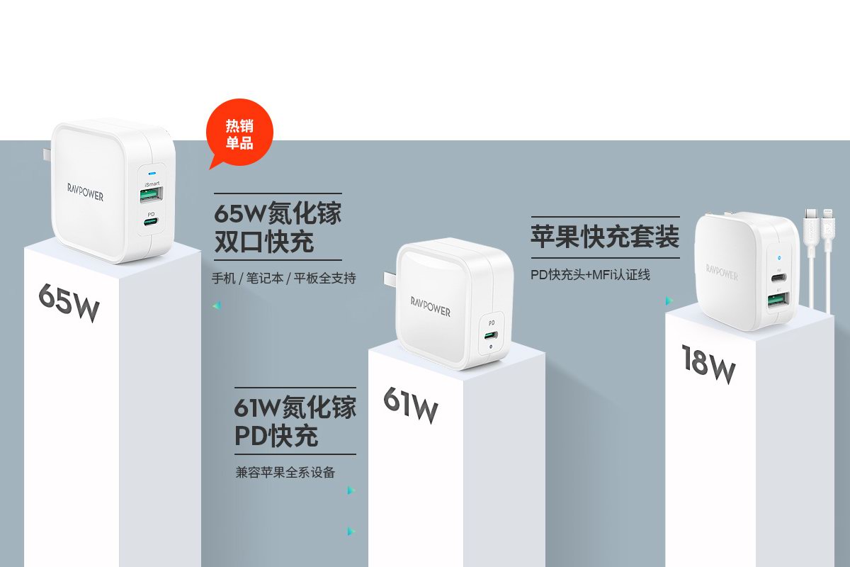 RAVPower主营业务覆盖了移动电源、充电器、数据线、相机电池、集线器、车载配件等多个品类。其中氮化镓充电器有30W、45W、61W、65W、90W等类型,是行业内氮化镓充电器品线布局最全、最早的品牌之一。RAVPower是苹果官方MFi认证授权商,生产的每一条苹果数据线均通过苹果官方MFi认证,不弹窗不伤机,能更好地保护充电设备。