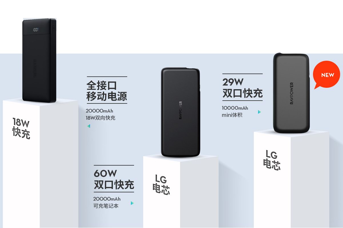 RAVpower移动电源机身纤瘦扁平,配备USB-C双向快充口和USB-A智能快充口,哑光表面工艺处理看上去沉稳大气。10000mAh、20000mAh两种常见的容量可选,并采用了LG电芯稳定可靠有保障。性能方面,18W 20000mAh型号主要为长续航手机用户准备,29W 10000mAh双口快充为用户提供轻装出行大功率快充,60W 20000mAh型号可以对笔记本充电,超大的容量使其很适合携带出远门。