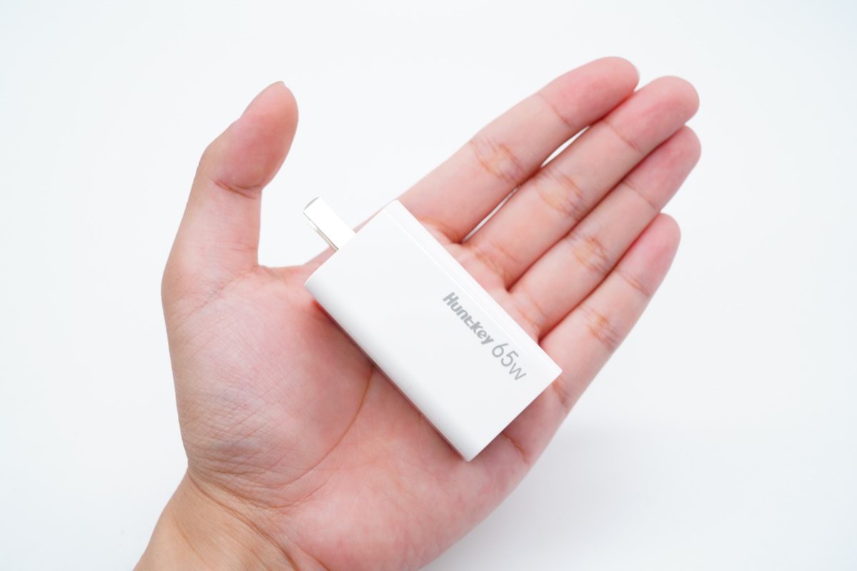 一般来说笔记本标配的电源适配器体积都十分巨大,接近板砖一样的体积为用户携带带来不便,航嘉65W 1C1A氮化镓充电器内部采用高频高效氮化镓功率器件制作,并通过立体排布设计进一步浓缩体积空间,体积大幅度减少,重量仅有109g外带甚至可以放入口袋,减轻用户外出负担。条形柱状外观设计,侧边印有“Huntkey 65W”商标与功率标识,代表这枚小巧的充电器拥有澎湃的输出能力,插脚方面是固定两脚插脚,进一步缩减体内空间。