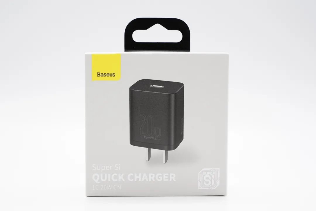 倍思20W Super Si快充充电器采用黑色机身壳,表面哑光,整体小巧精致。单USB-C输出口配置,接口采用铝制银环装饰,看上去更加精致,具备5V3A、9V2.22A、12V1.67A、15V1.33A、20V1A、3.3-5.9V3A和3.3-11V2.2A电压档位。固定插脚设计,三围尺寸33.93mm * 27.85mm * 41.22mm,功率密度0.51W/cm³。