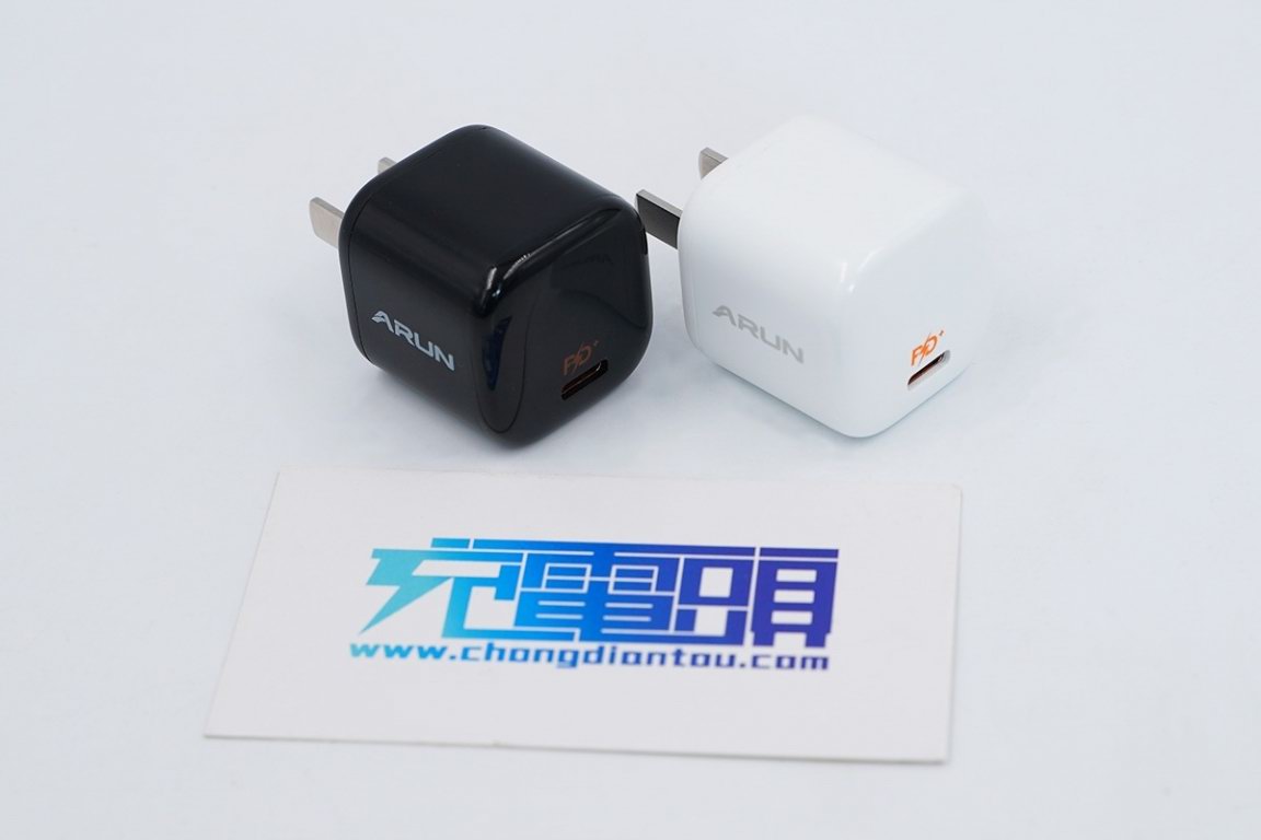 充电器整体光滑简洁,造型经典,表面采用亮面工艺,输入输出端外壳磨砂处理,整个充电器壳体没有任何品牌logo,壳体封装口在USB-C端。单USB-C输出口配置,具备5V3A、9V2.22A、12V1.67A三组固定电压档位。固定插脚设计,三围尺寸43.01mm X 37.91mm X 22.04mm,功率密度约为0.56W/cm³。