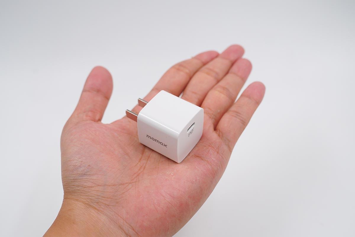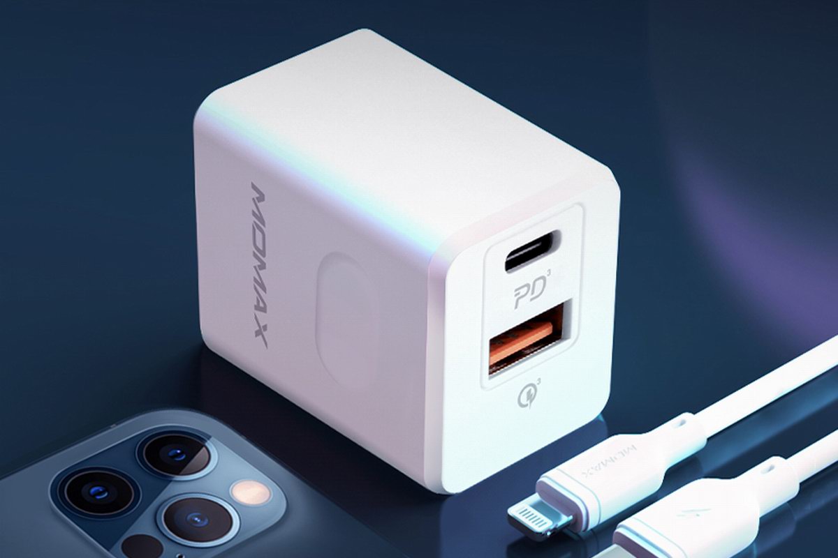 MOMAX的这款充电器通体白色的外观配色。壳体四周边角过渡圆润,上下则做削平处理,充电器的侧面镭雕了“MOMAX”的品牌Logo,另一侧带有PD3.0的标识。单USB-C物理输出接口设计,支持5V3A、9V2.22A、12V1.67A三个固定电压档位以及3.3-5.9V 3A、3.3-11V 1.8A两组PPS档位。固定两脚插脚,三围尺寸30mm x 29.95mm x 29.88mm,功率密度为0.74W/cm³ 。