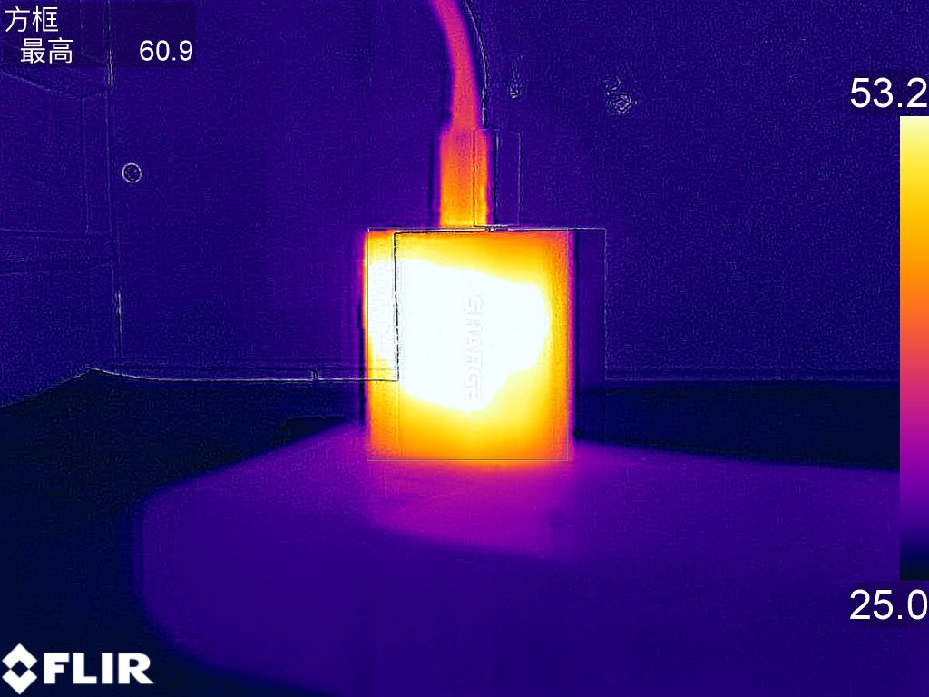 目前国家标准中对充电器表面温度要求是,不高于95度,SHARGE 20W PD充电器测试最高温度仍比国家标准低不少,这些温度都是符合安全使用标准的。