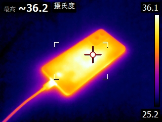 这是充电进行到28分钟左右的时候,手机背面最高温度为36.2℃。