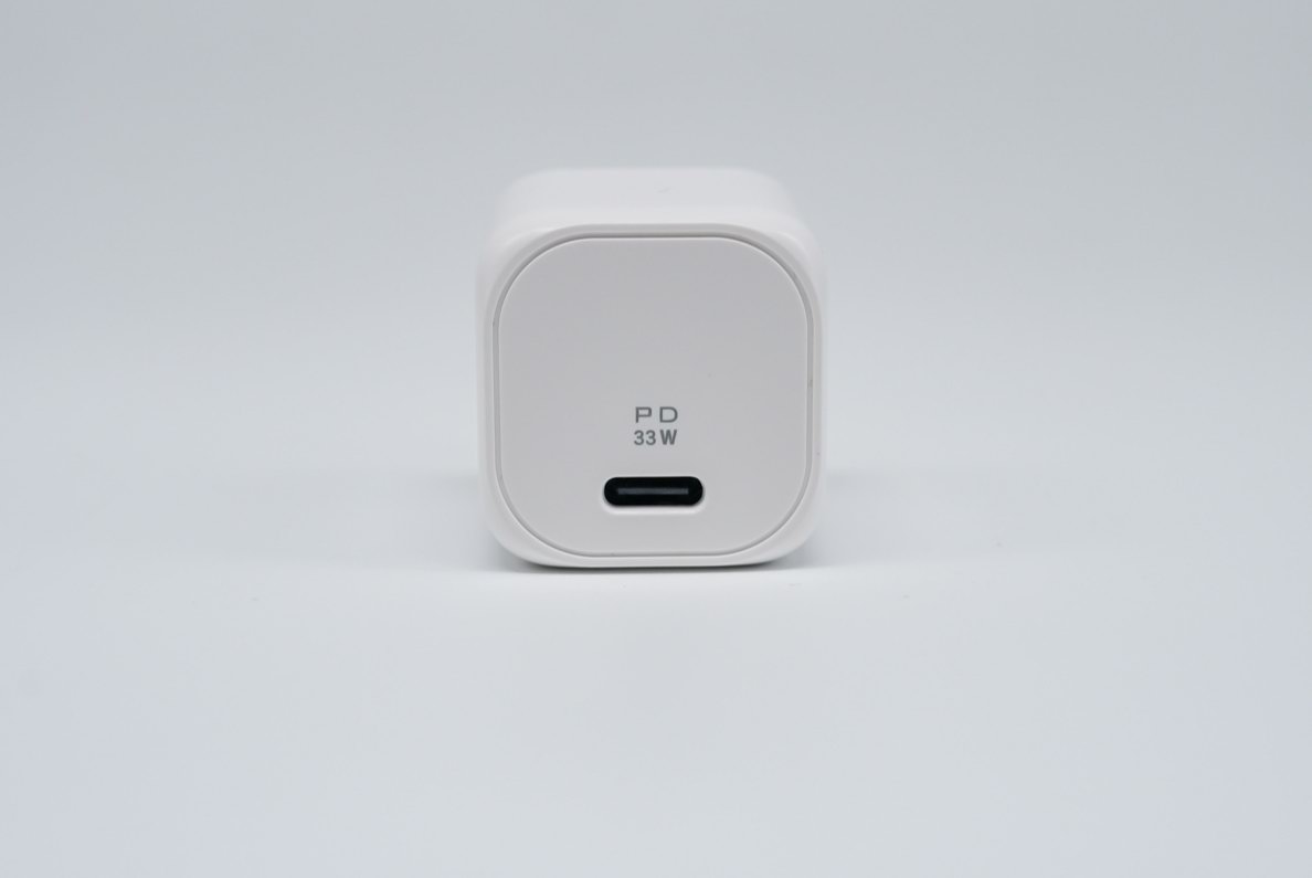 接口配置方面,辉越光电33W迷你充电器采用USB-C输出口配置,接口面板上印有“PD 33W”字眼表明其性能不简单,支持USB PD快速充电标准,适用于市面上绝大部分数码产品使用。